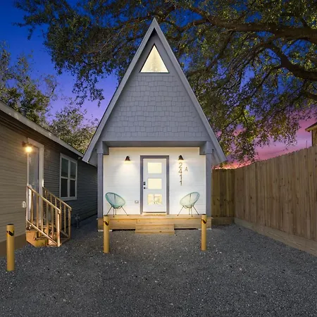 El A-frame único en el centro de Houston es una mezcla perfecta de diseño distintivo y comodidad moderna. Su estructura triangular y sus ventanas de suelo a techo ofrecen un ambiente luminoso y abierto, ideal para aquellos que buscan una experiencia única. Situado en un barrio vibrante, este alojamiento se encuentra a solo 1.5 km de la Universidad del Sur de Texas y a 2.5 km del Houston Toyota Center, permitiendo acceso fácil a diversas atracciones locales. La ubicación central del A-frame te acercará a lugares icónicos como el zoológico de Houston y los campos de golf del River Oaks Country Club. Este acogedor alojamiento no solo es un refugio, sino un verdadero tesoro para los viajeros aventureros que desean explorar Houston y disfrutar de todas sus maravillas.